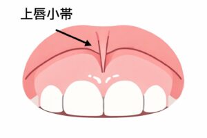 上唇と歯ぐきの間(お鼻のちょうど下あたり)をめくってみると、一本の細いスジがあるのが分かります。これは「上唇小帯(じょうしんしょうたい)」と呼ばれるものです。